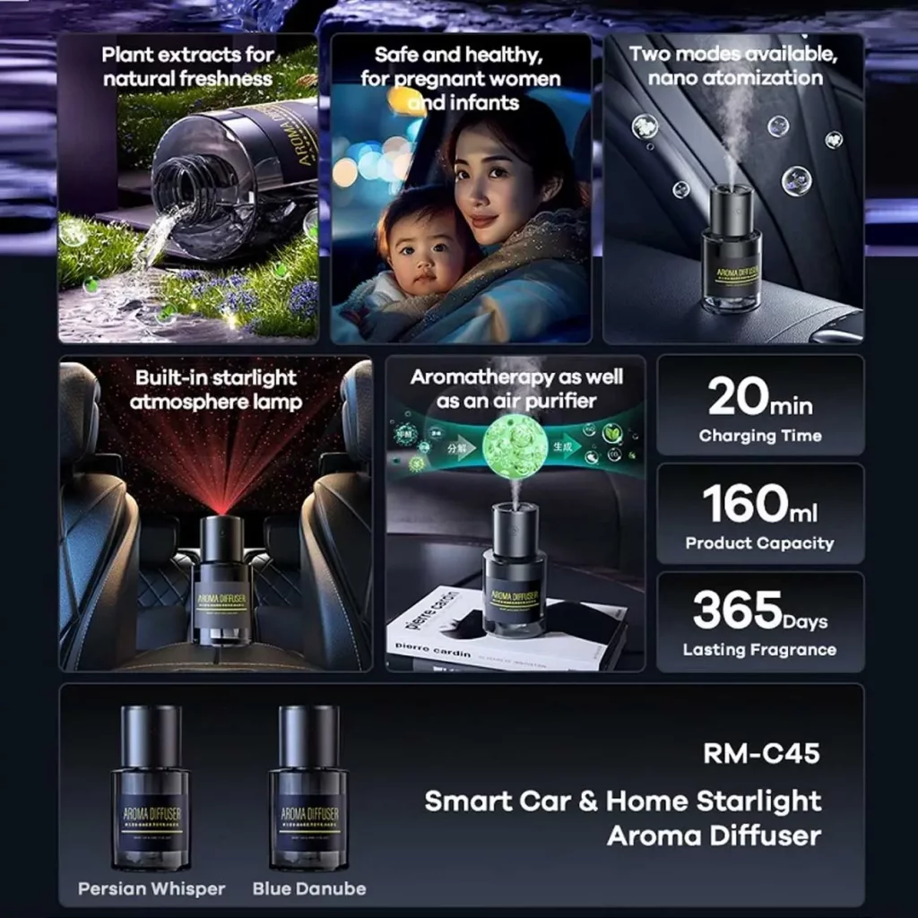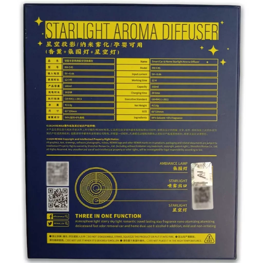 محیطی ارام و خوشبو همیشه تاثیر زیادی بر احساسات و انرژی روزانه دارد.خوشبوکننده REMAX starlighAroma Diffuser_RM_C45انتخابی مدرن برای افرادی است که به ارامش طراحی زیبا و فضایی دلنشین اهمیت می دهند . این محصول با ترکیب رایحه دلپذیر و جلوه نوری ستاره ای محیطی متفاوت و ارامش بخش را ایجاد می کند و هم در خانه و هم در داخل خودرو قابل استفاده است.